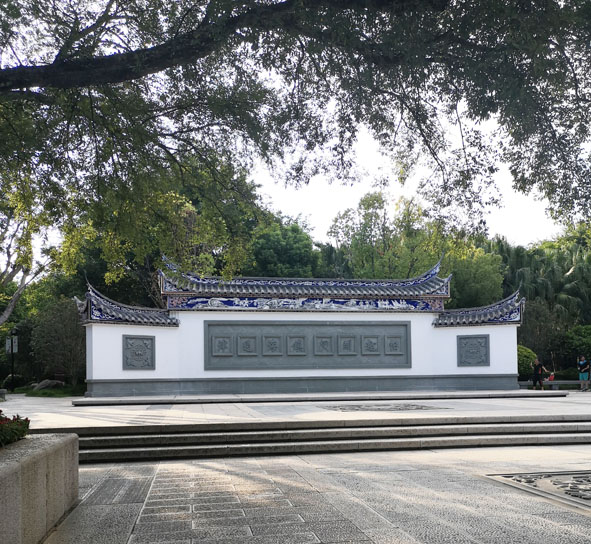 重建的鎮海樓比原來抬高了10米,登上這抬高的石階,來到一樓前,映入眼簾的是一塊鑲著一塊長約三米、寬約一米五的雙龍騰云駕霧的巨幅青石浮雕,栩栩如生,雙龍矯健威武。浮雕下方,還刻有一對如意。
